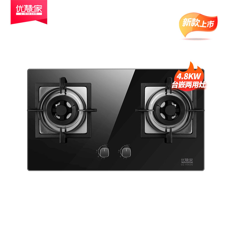 优慧家燃气灶——4.8kw台嵌两用式灶(玻璃面板)JZT-V563G